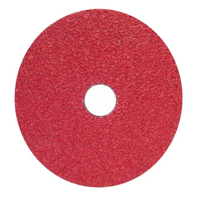 This is manufactured by Norton. The manufacturer part number is 77696008407. Its diameter is 5.00" (127.00mm). It is shipped in bulk. It has a classic red colour. While its abrasive grit is 24. Abrasive Grade Info: extra coarse. The product is widely employed in general purpose. It is manufactured from rugged ceramic alumina abrasive materials. It comes in disc configuration. The product is designated with the ear99 code number