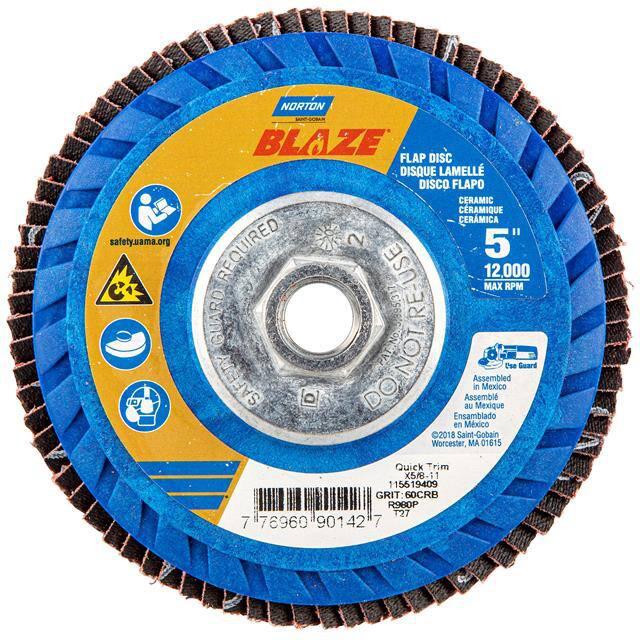 This is manufactured by Norton. The manufacturer part number is 77696090142. Its diameter is 5.00" (127.00mm). It is shipped in bulk. It has a classic orange colour. While its abrasive grit is 60. Abrasive Grade Info: coarse. The product is widely employed in general purpose. It is manufactured from rugged ceramic alumina abrasive materials. The product is designated with the ear99 code number