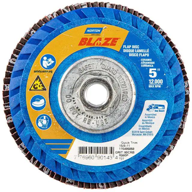 This is manufactured by Norton. The manufacturer part number is 77696090143. Its diameter is 5.00" (127.00mm). It is shipped in bulk. It has a classic orange colour. While its abrasive grit is 80. Abrasive Grade Info: coarse. The product is widely employed in general purpose. It is manufactured from rugged ceramic alumina abrasive materials. The product is designated with the ear99 code number