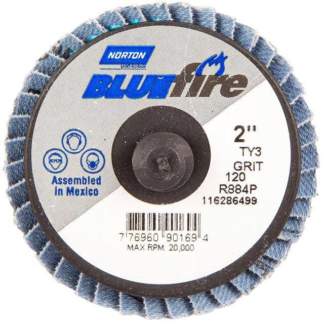 This is manufactured by Norton. The manufacturer part number is 77696090169. Its diameter is 2.00" (50.80mm). It is shipped in bulk. It has a classic black colour. While its abrasive grit is p120. Abrasive Grade Info: medium. The product is widely employed in general purpose. It is manufactured from rugged zirconia alumina abrasive materials. The product is designated with the ear99 code number