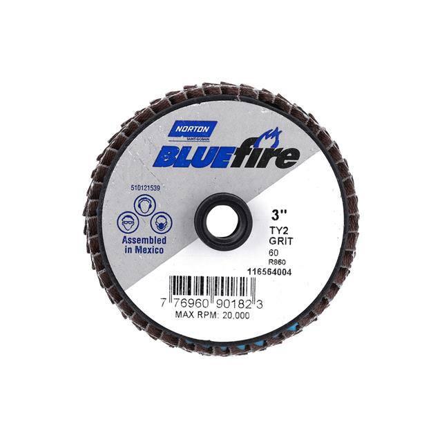 This is manufactured by Norton. The manufacturer part number is 77696090182. Its diameter is 3.00" (76.20mm). It is shipped in bulk. It has a classic blue colour. While its abrasive grit is p60. Abrasive Grade Info: coarse. The product is widely employed in general purpose. It is manufactured from rugged zirconia alumina abrasive materials. The product is designated with the ear99 code number