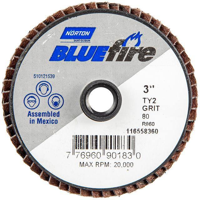 This is manufactured by Norton. The manufacturer part number is 77696090183. Its diameter is 3.00" (76.20mm). It is shipped in bulk. It has a classic blue colour. While its abrasive grit is p80. Abrasive Grade Info: coarse. The product is widely employed in general purpose. It is manufactured from rugged zirconia alumina abrasive materials. The product is designated with the ear99 code number