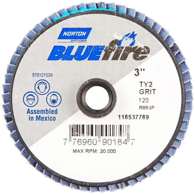 This is manufactured by Norton. The manufacturer part number is 77696090184. Its diameter is 3.00" (76.20mm). It is shipped in bulk. It has a classic black colour. While its abrasive grit is p120. Abrasive Grade Info: medium. The product is widely employed in general purpose. It is manufactured from rugged zirconia alumina abrasive materials. The product is designated with the ear99 code number