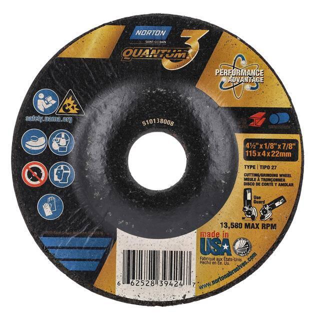 This is manufactured by Norton. The manufacturer part number is 66252839424. Its diameter is 4.50" (114.30mm). It is shipped in bulk. It has a classic black colour. While its abrasive grit is 24. Abrasive Grade Info: coarse. The product is widely employed in general purpose. It is manufactured from rugged ceramic alumina abrasive materials. It comes in depressed center wheels configuration. The product is designated with the ear99 code number