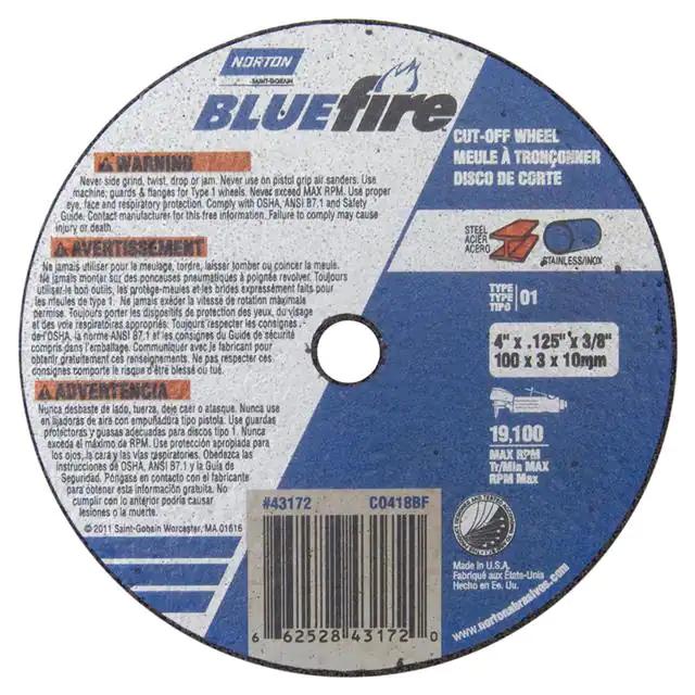 This is manufactured by Norton. The manufacturer part number is 66252843172. Its diameter is 4.00" (101.60mm). While its abrasive grit is 46. It is shipped in bulk. It has a classic brown colour. Abrasive Grade Info: coarse. Furthermore, the product is 0.13" (3.18mm) wide. The product is widely employed in general purpose. It is manufactured from rugged zirconia alumina abrasive materials. It comes in cut-off wheel configuration. The product is designated with the ear99 code number