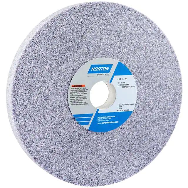 This is manufactured by Norton. The manufacturer part number is 66253043655. Its diameter is 8.00" (203.20mm). It is assigned with possible HTSUS value of 6804.22.4000. It is shipped in bulk. While its abrasive grit is 46. Abrasive Grade Info: coarse. The product is widely employed in general purpose. The product is designated with the ear99 code number