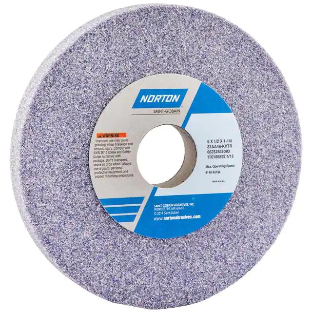 This is manufactured by Norton. The manufacturer part number is 66253363915. Its diameter is 14.00" (355.60mm). It is assigned with possible HTSUS value of 6804.22.4000. It is shipped in bulk. While its abrasive grit is 46. Abrasive Grade Info: coarse. The product is widely employed in general purpose. The product is designated with the ear99 code number