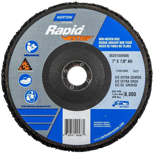 This is manufactured by Norton. The manufacturer part number is 66261009586. Its diameter is 7.00" (177.80mm). It is assigned with possible HTSUS value of 6805.30.0000. It is shipped in bulk. It has a classic black colour. Abrasive Grade Info: extra coarse. The product is widely employed in general purpose. It is manufactured from rugged silicon carbide abrasive materials. The product is designated with the ear99 code number