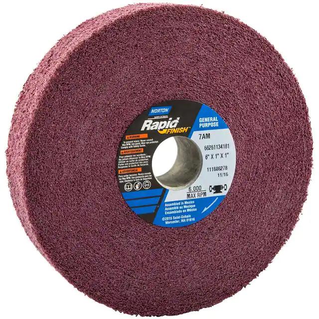 This is manufactured by Norton. The manufacturer part number is 66261134181. Its diameter is 6.00" (152.40mm). It is shipped in bulk. It has a classic maroon colour. Abrasive Grade Info: medium. Furthermore, the product is 1.00" (25.40mm) wide. The product is widely employed in general purpose. It is manufactured from rugged aluminum oxide abrasive materials. It comes in non-woven wheels configuration. The product is designated with the ear99 code number