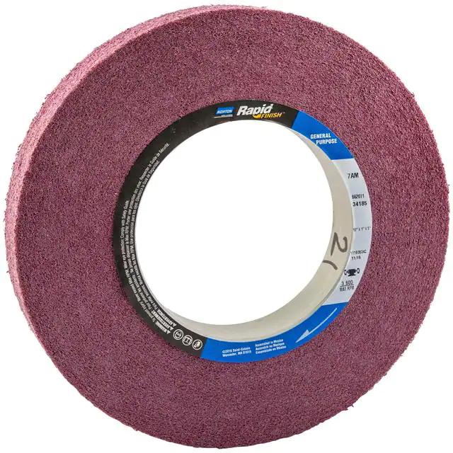 This is manufactured by Norton. The manufacturer part number is 66261134185. Its diameter is 10.00" (254.00mm). It is shipped in bulk. It has a classic maroon colour. Abrasive Grade Info: medium. Furthermore, the product is 1.00" (25.40mm) wide. The product is widely employed in general purpose. It is manufactured from rugged aluminum oxide abrasive materials. It comes in non-woven wheels configuration. The product is designated with the ear99 code number