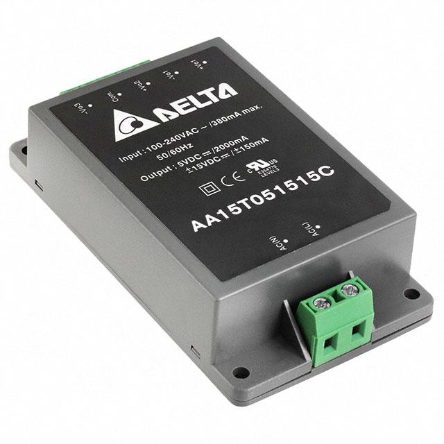 This is manufactured by Delta Electronics. The manufacturer part number is AA15T051515C. It is assigned with possible HTSUS value of 8504.40.6001. The product is rohs3 compliant. It has a 5v output voltage. The product features power and watts of 15w. It is approved by ce. The possible product's input voltage is 85 ~ 264 vac. It comes in enclosed configuration. The product is widely employed in ite (commercial). In addition, it is reach unaffected. 15v of voltage output 2. It features -15v of voltage output 3. It is a highly efficient product with an 79% of high efficiency. It is shipped in box. Does it require minimum load? no. The product's diameters include 2.91" l x 2.13" w x 0.77" h (74.0mm x 54.0mm x 19.5mm). 3 kv of isolation voltage. Its typical moisture sensitivity level is 1 (unlimited). The splendid features of the product include dc input capable, universal input. The product is available in chassis mount configuration. 150 ma is its output current value. The product aa15t (15w), is a highly preferred choice for users. It has a 2 a current - output. The product has -25°c ~ 70°c operating temperature range. Moreover, it corresponds to aa15t, a base product number of the product. The product's maximum load current is 150 ma. Additionally, the product is supplied with 3 outputs. The product is designated with the ear99 code number