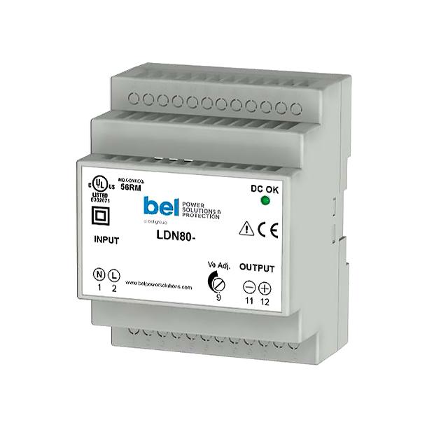 This is manufactured by Bel Power Solutions. The manufacturer part number is LDN80-12. It has typical 18 weeks of manufacturer standard lead time. The product's diameters include 2.42" l x 2.83" w x 3.54" h (61.5mm x 72.0mm x 90.0mm). It features enclosed ac dc converters 1 output 12v 6a 90 ~ 264 vac input. 4.2kv of isolation voltage. The splendid features of the product include adjustable output, dc input capable, ip20, load sharing, universal input. The product is available in din rail configuration. The product is widely employed in ite (commercial). The product ldn80 (80w), is a highly preferred choice for users. It has a 12v output voltage. In addition, box is the available packaging type of the product. It is a highly efficient product with an 86% of high efficiency. The product features power and watts of 80w. The maximum product's output current is 6a. The possible product's input voltage is 90 ~ 264 vac. The product has -40°c ~ 70°c (with derating) operating temperature range. It comes in enclosed configuration. Additionally, the product is supplied with 1 outputs. The bel power solutions's product offers user-desired applications.
