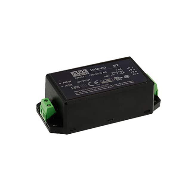 This is manufactured by Mean Well USA Inc.. The manufacturer part number is IRM-60-12ST. Moreover, it corresponds to irm-60, a base product number of the product. It is assigned with possible HTSUS value of 8504.40.9520. The product is rohs3 compliant. It has a 12v output voltage. The product features power and watts of 60w. It is approved by cb, ce, curus, tuv. The possible product's input voltage is 85 ~ 264 vac. It comes in enclosed configuration. The product is widely employed in ite (commercial). In addition, it is reach unaffected. It is a highly efficient product with an 87.5% of high efficiency. It is shipped in box. Does it require minimum load? no. The product's diameters include 4.29" l x 2.05" w x 1.32" h (109.0mm x 52.0mm x 33.5mm). It has a long 23 weeks standard lead time. 3 kv of isolation voltage. Its typical moisture sensitivity level is 1 (unlimited). The splendid features of the product include universal input. The product is available in chassis mount configuration. The product irm-60 (60w), is a highly preferred choice for users. It has a 5 a current - output. The product has -30°c ~ 70°c (with derating) operating temperature range. Standard number include: 60335-1; 62368-1. Additionally, the product is supplied with 1 outputs. The product is designated with the ear99 code number