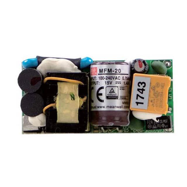 This is manufactured by MEAN WELL USA Inc.. The manufacturer part number is MFM-20-3.3. It is assigned with possible HTSUS value of 8504.40.9510. The product is rohs3 compliant. It has a 3.3v output voltage. The product features power and watts of 15 w. The maximum product's output current is 4.5a. It is approved by cb, ce, curus, eac, tuv. Moreover, the product comes in [Package/ Case]. The possible product's input voltage is 80 ~ 264 vac. It comes in open frame configuration. Load Regulation - ±0.5%. The product is widely employed in household appliances, medical. In addition, it is reach unaffected. It is a highly efficient product with an 81% of high efficiency. Has a line regulation of ±0.3%. It is shipped in box. The product's diameters include 1.93" l x 0.94" w x 0.91" h (49.0mm x 23.8mm x 23.0mm). It has a long 23 weeks standard lead time. Its typical moisture sensitivity level is not applicable. The splendid features of the product include universal input. The product is available in through hole configuration. The product mfm-20 (20w), is a highly preferred choice for users. The product has -35°c ~ 85°c (with derating) operating temperature range. Moreover, it corresponds to mfm-20, a base product number of the product. Additionally, the product is supplied with 1 outputs. The product is designated with the ear99 code number