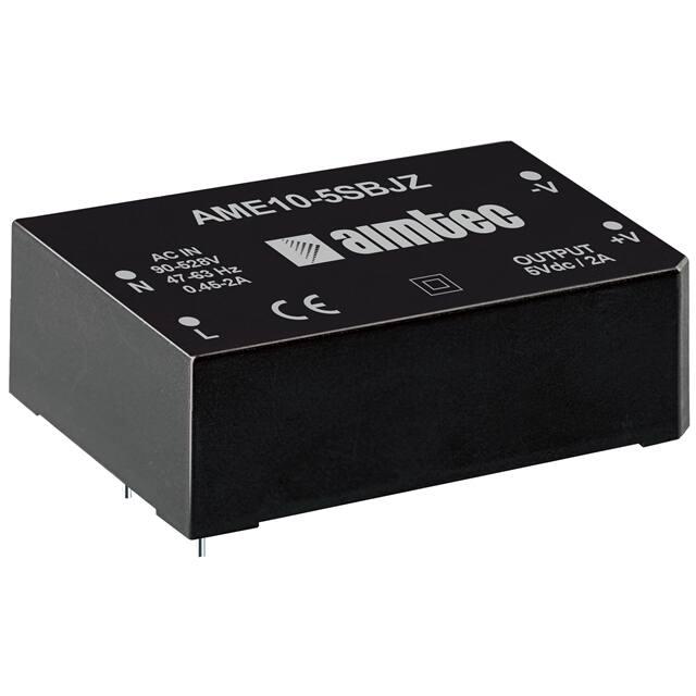 This is manufactured by aimtec. The manufacturer part number is AME10-9SBJZ. It is assigned with possible HTSUS value of 8504.40.9510. The product is rohs3 compliant. The product features power and watts of 10 w. The maximum product's output current is 1.1a. It is approved by ce. Moreover, the product comes in [Package/ Case]. The possible product's input voltage is 90 ~ 528 vac. The product is available in through hole configuration. It comes in enclosed configuration. Load Regulation - ±0.5%. The product is widely employed in ite (commercial). It has a 9v output voltage. It is a highly efficient product with an 76% of high efficiency. Has a line regulation of ±0.5%. It is shipped in bulk. The product's diameters include 2.44" l x 1.77" w x 1.18" h (62.0mm x 45.0mm x 30.0mm). Its typical moisture sensitivity level is 1 (unlimited). The typical product's weight is 0.265 lb (120.00 g). The product ame10-bjz (10w), is a highly preferred choice for users. The product has -40°c ~ 70°c (with derating) operating temperature range. Moreover, it corresponds to ame10, a base product number of the product. Additionally, the product is supplied with 1 outputs. The product is designated with the ear99 code number