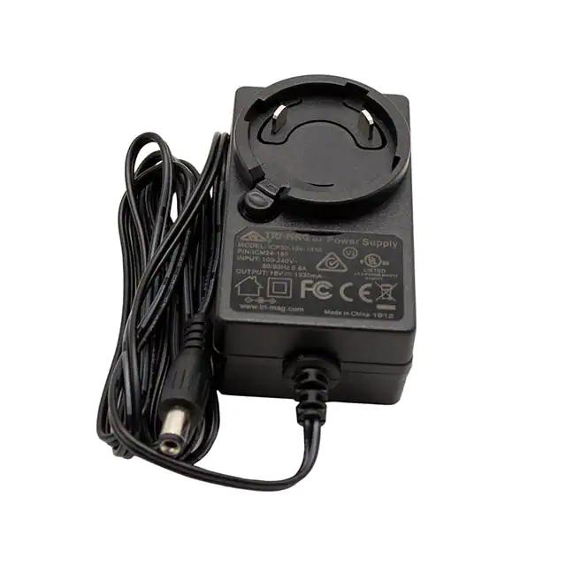 This is manufactured by Tri-Mag, LLC. The manufacturer part number is ICM24-180. It is assigned with possible HTSUS value of 8504.40.9510. The product is rohs3 compliant. The product features a [Ploarization] polarity. Features no load power consumption score of 100mw (max). The product features power and watts of 23 w. The maximum product's output current is 1.3a. It is approved by cul, fcc, ul. It carries fixed blade, multi-blade (sold separately) input type. The possible product's input voltage is 90 ~ 264 vac. The product is designed as a nice wall mount (class ii). The product is widely employed in ite (commercial). Input connector of nema 1-15p, multi-blade (sold separately). Features a versatile barrel plug, 2.1mm i.d. x 5.5mm o.d. x 9.5mm output connector. It is a highly efficient product with an level vi of high efficiency. It is shipped in box. The product is utilised in various regions, including international. The product's diameters include 2.84" l x 1.70" w x 1.20" h (72.1mm x 43.2mm x 30.5mm). The cord is 59" (1.50m) long. It has a long 52 weeks standard lead time. Its typical moisture sensitivity level is not applicable. The product tri-mag®, icm24 (24w), is a highly preferred choice for users. The product has 0°c ~ 40°c operating temperature range. Furthermore, the output voltage is 18v. Standard number include: 62368-1. Moreover, it corresponds to icm24, a base product number of the product. The product is designated with the ear99 code number
