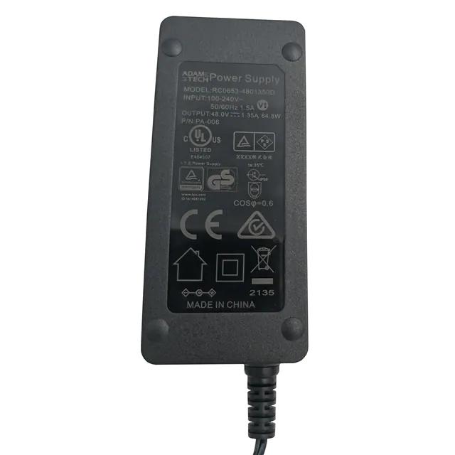 This is manufactured by Adam Tech. The manufacturer part number is PA-006. It is assigned with possible HTSUS value of 8504.40.9520. The product is rohs3 compliant. The product has 0°c ~ 45°c operating temperature range. The maximum product's output current is 1.35a. It is approved by ce, culus, gs, pse, tuv. It carries cord input type. The possible product's input voltage is 100 ~ 240 vac. The product is designed as a nice wall mount (class ii). It is a highly efficient product with an level vi of high efficiency. Input connector of iec 320-c7. In addition, it is reach unaffected. Features a versatile barrel plug, 2.5mm i.d. x 5.5mm o.d. x 9.5mm output connector. The product is widely employed in ite (commercial). It is shipped in bag. The product is utilised in various regions, including international. The product's diameters include 4.55" l x 1.30" w x 1.34" h (115.6mm x 33.0mm x 34.0mm). The cord is 59" (1.50m) long. It has a long 10 weeks standard lead time. Its typical moisture sensitivity level is not applicable. Furthermore, the output voltage is 48v. The product is designated with the ear99 code number