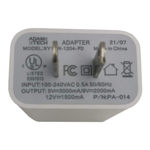 This is manufactured by Adam Tech. The manufacturer part number is PA-014. It is assigned with possible HTSUS value of 8504.40.9510. The product is rohs3 compliant. The product has -10°c ~ 40°c operating temperature range. The maximum product's output current is 3a, 2a, 1.5a. It is approved by culus. It carries fixed blade input type. The possible product's input voltage is 100 ~ 240 vac. The product is designed as a nice wall mount (class ii). Input connector of nema 1-15p. In addition, it is reach unaffected. Features a versatile usb c receptacle output connector. The product is widely employed in ite (commercial). It is shipped in bag. The product is utilised in various regions, including north america. The product's diameters include 1.90" l x 1.67" w x 1.04" h (48.2mm x 42.4mm x 26.4mm). It has a long 10 weeks standard lead time. Its typical moisture sensitivity level is not applicable. Furthermore, the output voltage is 5v, 9v, 12v. The product is designated with the ear99 code number