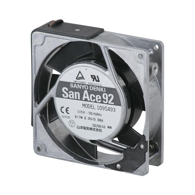 This is manufactured by Sanyo Denki America Inc.. The manufacturer part number is 109S493-20. The blades are constructed from robust plastic materials. It is assigned with possible HTSUS value of 8414.59.6590. The product is rohs3 compliant. Furthermore, the product is 25.00mm wide. The product features power and watts of 7.00w. It has a 38.9 cfm (1.09m³/min) air flow rate. It is approved by ce, pse, tuv, ul. It has noise values of 38.0db(a). It also exhibits voltage rating of 115vac. This has integrated with a ball, a bearing with long-lasting features. The product has 14 ~ 140°f (-10 ~ 60°c) operating temperature range. It provides maximum rpm up to 3100 rpm. This product offers longer life span for 25000 hrs @ 60°c. The product has a 0.197 in h2o (49.0 pa) static pressure. It is shipped in box. The product's diameters include square - 92mm l x 92mm h. The product features 3 wire leads termination style. It has a long 55 weeks standard lead time. Additionally, the product's output is 0.080a Its typical moisture sensitivity level is not applicable. The splendid features of the product include alarm. The typical product's weight is 0.683 lb (309.8 g). The product san ace 92, is a highly preferred choice for users. The frame of the product is made from highly durable aluminum materials. The latest designed fan is a type of tubeaxial offering unmatchable applications. Moreover, it corresponds to 109s493, a base product number of the product. The product is designated with the ear99 code number