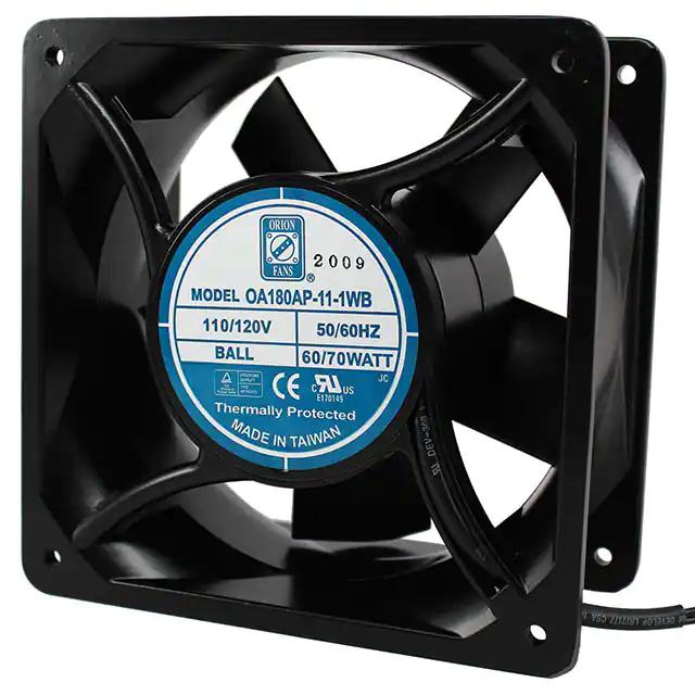 This is manufactured by Orion Fans. The manufacturer part number is OA180AP-11-1WB. The blades are constructed from robust polybutylene terephthalate (pbt) materials. It is assigned with possible HTSUS value of 8414.59.6590. The product is rohs3 compliant. Furthermore, the product is 89.00mm wide. The product features power and watts of 70.0w. It has a 409.0 cfm (11.45m³/min) air flow rate. It is approved by ce, curus, tuv, ur. While the voltage range is 100 ~ 120vac. It has noise values of 62.0db. It also exhibits voltage rating of 115vac. In addition, it is reach unaffected. This has integrated with a ball, a bearing with long-lasting features. The product has -4 ~ 158°f (-20 ~ 70°c) operating temperature range. It provides maximum rpm up to 3175 rpm. This product offers longer life span for 60000 hrs @ 40°c. The product has a 0.840 in h2o (209.2 pa) static pressure. It is shipped in box. The product's diameters include square - 180mm l x 180mm h. The product features 2 wire leads termination style. It has a long 19 weeks standard lead time. Its typical moisture sensitivity level is 1 (unlimited). The splendid features of the product include thermal overload protector (top). The typical product's weight is 4 lbs (1.8 kg). The product oa180ap, is a highly preferred choice for users. The frame of the product is made from highly durable aluminum materials. The latest designed fan is a type of tubeaxial offering unmatchable applications. Moreover, it corresponds to oa180ap, a base product number of the product. The product is designated with the ear99 code number