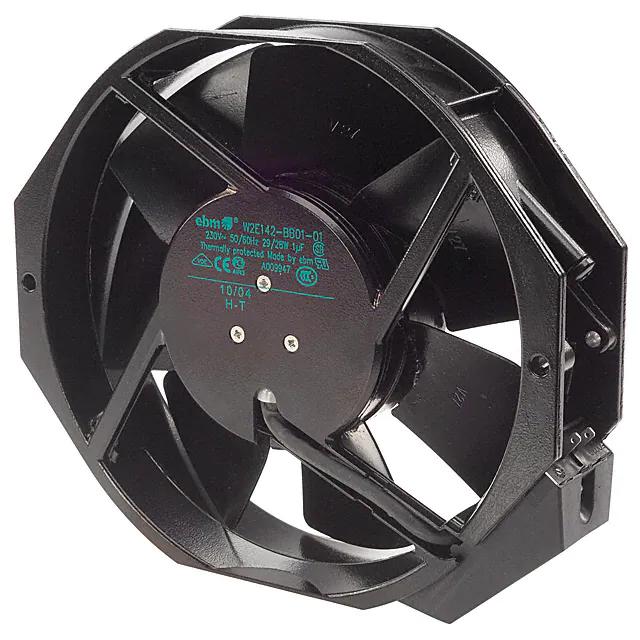 This is manufactured by ebm-papst Inc.. The manufacturer part number is W2E142-BB01-01. The blades are constructed from robust steel materials. It is assigned with possible HTSUS value of 8414.59.6590. The product is rohs3 compliant. Furthermore, the product is 38.00mm wide. The product features power and watts of 28.00w. It has a 230.0 cfm (6.44m³/min) air flow rate. It is approved by ccc, ce, csa, eac, ul, vde. It has noise values of 57.0db(a). It also exhibits voltage rating of 230vac. In addition, it is reach unaffected. This has integrated with a ball, a bearing with long-lasting features. The product has -40 ~ 176°f (-40 ~ 80°c) operating temperature range. It provides maximum rpm up to 3350 rpm. It is shipped in bulk. The product's diameters include rectangular/rounded - 172mm l x 150mm h. The product features 2 terminals termination style. Additionally, the product's output is 0.130a Its typical moisture sensitivity level is 1 (unlimited). The typical product's weight is 1.8 lbs (816.5 g). The product w2e142, is a highly preferred choice for users. The frame of the product is made from highly durable aluminum materials. The latest designed fan is a type of tubeaxial offering unmatchable applications. The product is designated with the ear99 code number