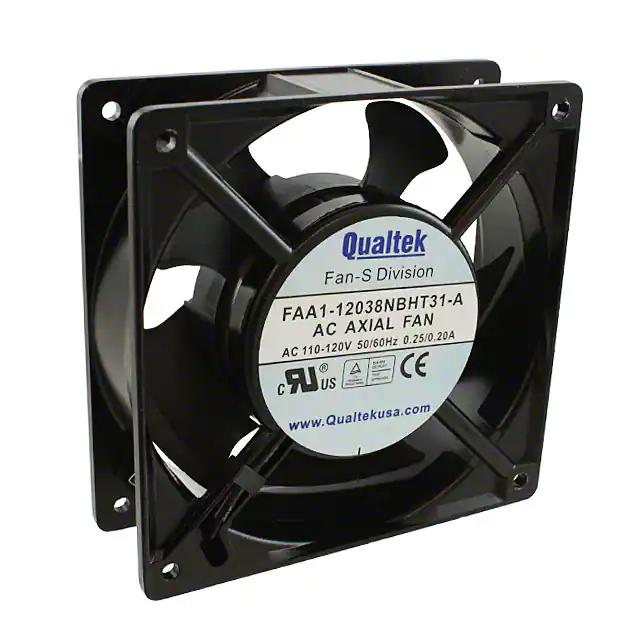 This is manufactured by Qualtek. The manufacturer part number is FAA1-12038NBHT31-A. The blades are constructed from robust plastic materials. It is assigned with possible HTSUS value of 8414.59.6590. The product is rohs3 compliant. Furthermore, the product is 38.50mm wide. The product features power and watts of 14.00w. It has a 97.0 cfm (2.72m³/min) air flow rate. It is approved by ce, curus, tuv. It has noise values of 44.5db(a). It also exhibits voltage rating of 115vac. In addition, it is reach unaffected. This has integrated with a ball, a bearing with long-lasting features. The product has 14 ~ 158°f (-10 ~ 70°c) operating temperature range. It provides maximum rpm up to 2900 rpm. The product has a 0.350 in h2o (87.2 pa) static pressure. It is shipped in bulk. The product's diameters include square - 119.5mm l x 119.5mm h. The product features 2 terminals termination style. It has a long 31 weeks standard lead time. Additionally, the product's output is 0.190a Its typical moisture sensitivity level is 1 (unlimited). The typical product's weight is 1.2 lbs (544.3 g). The product faa1-12038, is a highly preferred choice for users. The frame of the product is made from highly durable aluminum materials. The latest designed fan is a type of tubeaxial offering unmatchable applications. Moreover, it corresponds to faa1-12038, a base product number of the product. The product is designated with the ear99 code number