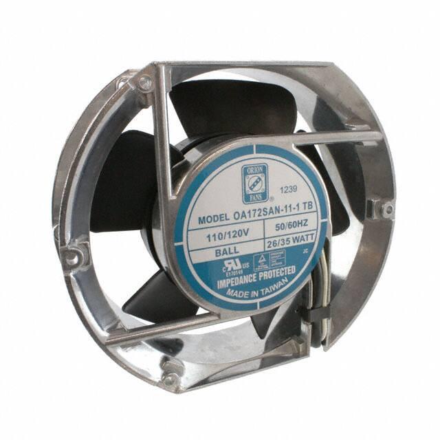 This is manufactured by Orion Fans. The manufacturer part number is OA172SAN-11-1TB. The blades are constructed from robust polybutylene terephthalate (pbt) materials. It is assigned with possible HTSUS value of 8414.59.6590. The product is rohs3 compliant. Furthermore, the product is 51.00mm wide. The product features power and watts of 35.00w. It has a 235.0 cfm (6.58m³/min) air flow rate. It is approved by curus. While the voltage range is 80 ~ 130vac. It has noise values of 52.0db. It also exhibits voltage rating of 115vac. In addition, it is reach unaffected. This has integrated with a ball, a bearing with long-lasting features. The product has -40 ~ 158°f (-40 ~ 70°c) operating temperature range. It provides maximum rpm up to 3200 rpm. This product offers longer life span for 60000 hrs @ 40°c. The product has a 0.700 in h2o (174.4 pa) static pressure. It is shipped in bulk. The product's diameters include rectangular/rounded - 172mm l x 150mm h. The product features 2 terminals termination style. It has a long 19 weeks standard lead time. Its typical moisture sensitivity level is 1 (unlimited). The splendid features of the product include capacitor, thermal overload protector (top). The product oa172san, is a highly preferred choice for users. The frame of the product is made from highly durable aluminum materials. The latest designed fan is a type of tubeaxial offering unmatchable applications. Moreover, it corresponds to oa172san, a base product number of the product. The product is designated with the ear99 code number