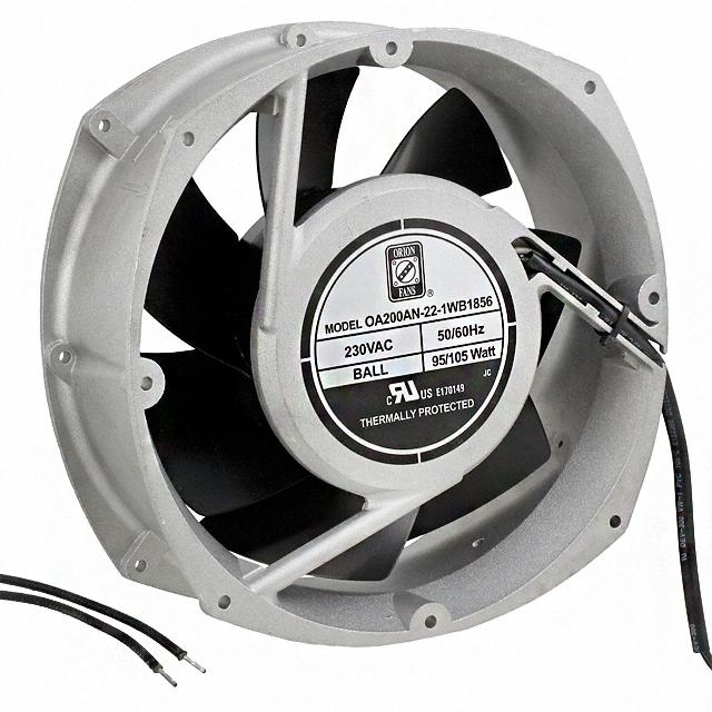 This is manufactured by Orion Fans. The manufacturer part number is OA200AN-22-1WB1856. The blades are constructed from robust metal materials. It is assigned with possible HTSUS value of 8414.59.6590. The product is rohs3 compliant. Furthermore, the product is 70.00mm wide. The product features power and watts of 105w. It has a 485.0 cfm (13.58m³/min) air flow rate. It is approved by curus, tuv. While the voltage range is 200 ~ 240vac. It has noise values of 68.0db. It also exhibits voltage rating of 230vac. In addition, it is reach unaffected. This has integrated with a ball, a bearing with long-lasting features. The product has -22 ~ 176°f (-30 ~ 80°c) operating temperature range. It provides maximum rpm up to 3300 rpm. This product offers longer life span for 50000 hrs @ 55°c. The product has a 0.930 in h2o (231.7 pa) static pressure. It is shipped in box. The product's diameters include rectangular/rounded - 220mm l x 200mm h. The product features 2 wire leads termination style. It has a long 19 weeks standard lead time. Its typical moisture sensitivity level is 1 (unlimited). It is IP rated with ip56 - dust protected, water resistant. The splendid features of the product include capacitor, thermal overload protector (top). The typical product's weight is 4 lbs (1.8 kg). The product oa200an, is a highly preferred choice for users. The frame of the product is made from highly durable aluminum materials. The latest designed fan is a type of tubeaxial offering unmatchable applications. Moreover, it corresponds to oa200an, a base product number of the product. The product is designated with the ear99 code number
