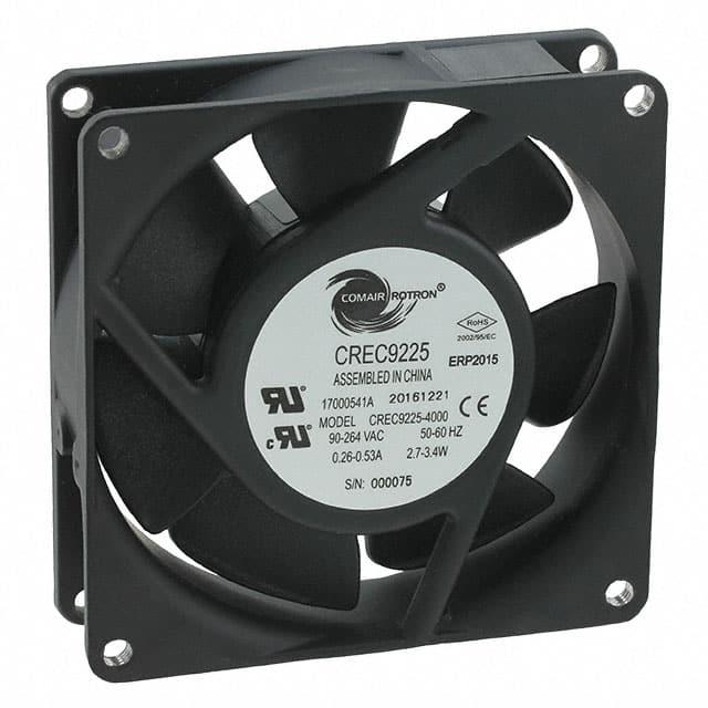 This is manufactured by Comair Rotron. The manufacturer part number is 17000541A. The blades are constructed from robust polybutylene terephthalate (pbt), fiberglass reinforced materials. It is assigned with possible HTSUS value of 8414.59.6590. The product is rohs3 compliant. Furthermore, the product is 25.00mm wide. The product features power and watts of 4.00w. It has a 49.0 cfm (1.37m³/min) air flow rate. It is approved by ce, cul, ul. While the voltage range is 90 ~ 264vac. It has noise values of 43.0db(a). It also exhibits voltage rating of 100 ~ 240vac. In addition, it is reach unaffected. This has integrated with a ball, a bearing with long-lasting features. The product has -4 ~ 158°f (-20 ~ 70°c) operating temperature range. It provides maximum rpm up to 4000 rpm. This product offers longer life span for varies based on temperature. The product has a 0.350 in h2o (87.2 pa) static pressure. It is shipped in box. The product's diameters include square - 92mm l x 92mm h. The product features 2 terminals termination style. It has a long 10 weeks standard lead time. Additionally, the product's output is 0.530a Its typical moisture sensitivity level is not applicable. The splendid features of the product include auto restart, electronic commutation (ec). The typical product's weight is 0.4 lb (181.44 g). The frame of the product is made from highly durable magnesium alloy materials. The latest designed fan is a type of tubeaxial offering unmatchable applications. The product is designated with the ear99 code number