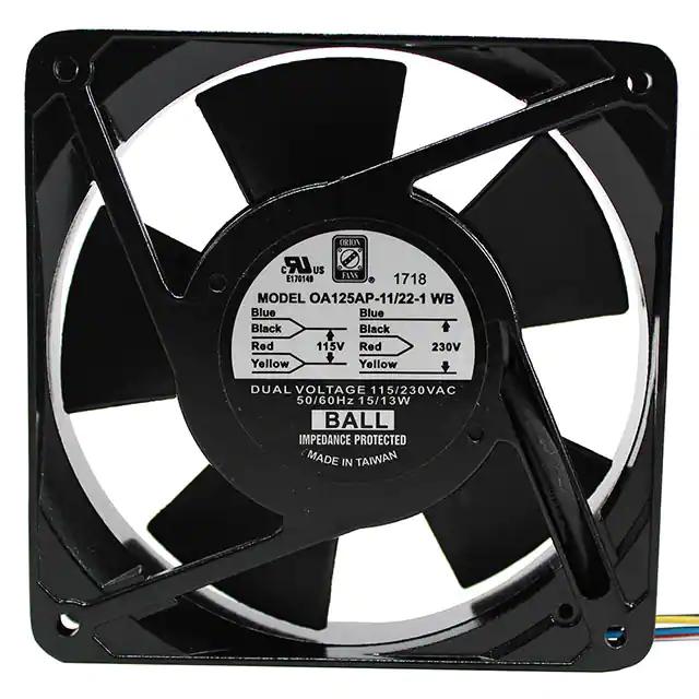 This is manufactured by Orion Fans. The manufacturer part number is OA125AP-11/22-1WB. The blades are constructed from robust polybutylene terephthalate (pbt) materials. It is assigned with possible HTSUS value of 8414.59.6590. The product is rohs3 compliant. Furthermore, the product is 25.00mm wide. The product features power and watts of 13.00w. It has a 81.0 cfm (2.27m³/min) air flow rate. While the voltage range is 100 ~ 240vac. It has noise values of 32.0db. It also exhibits voltage rating of 115/230vac. In addition, it is reach unaffected. This has integrated with a ball, a bearing with long-lasting features. The product has -4 ~ 176°f (-20 ~ 80°c) operating temperature range. It provides maximum rpm up to 2900 rpm. This product offers longer life span for 60000 hrs @ 40°c. The product has a 0.230 in h2o (57.3 pa) static pressure. It is shipped in box. The product's diameters include square - 120mm l x 120mm h. The product features 4 wire leads termination style. It has a long 19 weeks standard lead time. Its typical moisture sensitivity level is 1 (unlimited). The splendid features of the product include dual voltage. The product oa125, is a highly preferred choice for users. The frame of the product is made from highly durable aluminum materials. The latest designed fan is a type of tubeaxial offering unmatchable applications. Moreover, it corresponds to oa125ap, a base product number of the product. The product is designated with the ear99 code number