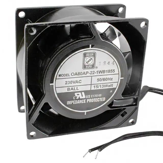 This is manufactured by Orion Fans. The manufacturer part number is OA80AP-22-1WB1855. The blades are constructed from robust metal materials. It is assigned with possible HTSUS value of 8414.59.6590. The product is rohs3 compliant. Furthermore, the product is 38.00mm wide. The product features power and watts of 13.00w. It has a 33.0 cfm (0.924m³/min) air flow rate. It is approved by curus, tuv. While the voltage range is 200 ~ 240vac. It has noise values of 35.0db. It also exhibits voltage rating of 230vac. In addition, it is reach unaffected. This has integrated with a ball, a bearing with long-lasting features. The product has -22 ~ 176°f (-30 ~ 80°c) operating temperature range. It provides maximum rpm up to 3200 rpm. This product offers longer life span for 50000 hrs @ 55°c. The product has a 0.220 in h2o (54.8 pa) static pressure. It is shipped in box. The product's diameters include square - 80mm l x 80mm h. The product features 2 wire leads termination style. It has a long 19 weeks standard lead time. Its typical moisture sensitivity level is 1 (unlimited). It is IP rated with ip55 - dust protected, water resistant. The typical product's weight is 0.95 lb (430.91 g). The product oa80, is a highly preferred choice for users. The frame of the product is made from highly durable aluminum materials. The latest designed fan is a type of tubeaxial offering unmatchable applications. Moreover, it corresponds to oa80ap, a base product number of the product. The product is designated with the ear99 code number