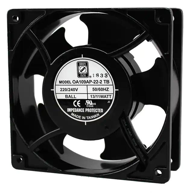 This is manufactured by Orion Fans. The manufacturer part number is OA109AP-22-2TB. The blades are constructed from robust polybutylene terephthalate (pbt) materials. It is assigned with possible HTSUS value of 8414.59.6590. The product is rohs3 compliant. Furthermore, the product is 38.50mm wide. The product features power and watts of 11.00w. It has a 71.0 cfm (1.99m³/min) air flow rate. It is approved by ce, curus, tuv, ur. While the voltage range is 160 ~ 260vac. It has noise values of 35.0db. It also exhibits voltage rating of 230vac. In addition, it is reach unaffected. This has integrated with a ball, a bearing with long-lasting features. The product has -4 ~ 167°f (-20 ~ 75°c) operating temperature range. It provides maximum rpm up to 2300 rpm. This product offers longer life span for 70000 hrs @ 40°c. The product has a 0.210 in h2o (52.3 pa) static pressure. It is shipped in box. The product's diameters include square - 120mm l x 120mm h. The product features 2 terminals termination style. It has a long 19 weeks standard lead time. Its typical moisture sensitivity level is 1 (unlimited). The typical product's weight is 1.2 lbs (544.3 g). The product oa109, is a highly preferred choice for users. The frame of the product is made from highly durable aluminum materials. The latest designed fan is a type of tubeaxial offering unmatchable applications. Moreover, it corresponds to oa109ap, a base product number of the product. The product is designated with the ear99 code number