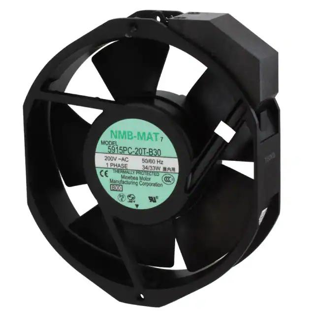 This is manufactured by NMB Technologies Corporation. The manufacturer part number is 5915PC-20T-B30-B00. The blades are constructed from robust polycarbonate (pc), fiberglass reinforced materials. It is assigned with possible HTSUS value of 8414.59.6590. The product is rohs compliant. Furthermore, the product is 38.00mm wide. The product features power and watts of 33.00w. It has a 212.0 cfm (5.94m³/min) air flow rate. It is approved by ce, csa, ul, vde. It has noise values of 56.0db. It also exhibits voltage rating of 200vac. This has integrated with a ball, a bearing with long-lasting features. The product has 14 ~ 158°f (-10 ~ 70°c) operating temperature range. It provides maximum rpm up to 3200 rpm. This product offers longer life span for 50000 hrs @ 25°c. The product has a 0.865 in h2o (215.6 pa) static pressure. It is shipped in bulk. The product's diameters include rectangular/rounded - 172mm l x 150mm h. The product features 2 terminals termination style. Additionally, the product's output is 0.210a Its typical moisture sensitivity level is 1 (unlimited). The typical product's weight is 1.8 lbs (816.5 g). The product pc, is a highly preferred choice for users. The frame of the product is made from highly durable aluminum materials. The latest designed fan is a type of tubeaxial offering unmatchable applications. Moreover, it corresponds to 5915pc, a base product number of the product. The product is designated with the ear99 code number
