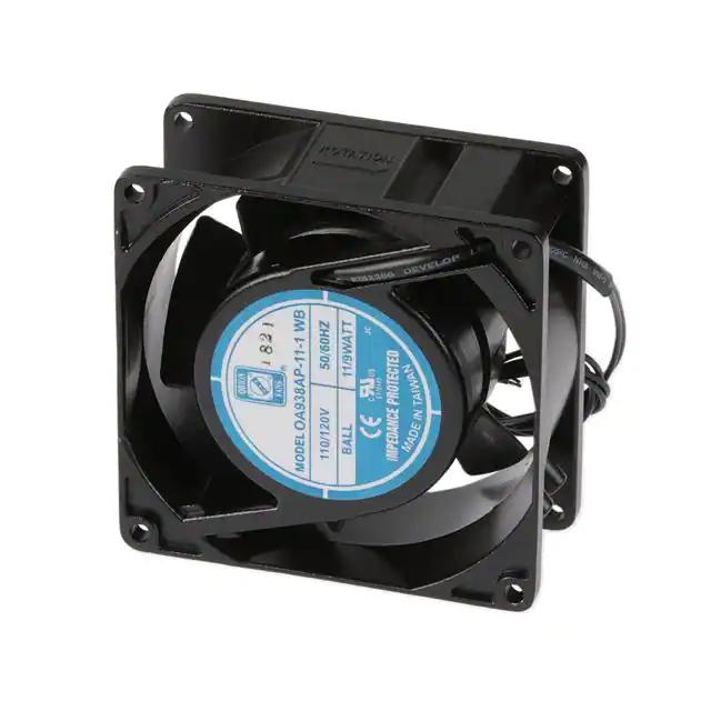This is manufactured by Orion Fans. The manufacturer part number is OA938AP-11-1WB. The blades are constructed from robust polybutylene terephthalate (pbt) materials. It is assigned with possible HTSUS value of 8414.59.6590. The product is rohs3 compliant. Furthermore, the product is 38.50mm wide. The product features power and watts of 9.00w. It has a 50.0 cfm (1.40m³/min) air flow rate. It is approved by curus, tuv. While the voltage range is 80 ~ 130vac. It has noise values of 32.0db. It also exhibits voltage rating of 115vac. In addition, it is reach unaffected. This has integrated with a ball, a bearing with long-lasting features. The product has -4 ~ 176°f (-20 ~ 80°c) operating temperature range. It provides maximum rpm up to 3100 rpm. This product offers longer life span for 60000 hrs @ 40°c. The product has a 0.220 in h2o (54.8 pa) static pressure. It is shipped in box. The product's diameters include square - 92mm l x 92mm h. The product features 2 wire leads termination style. It has a long 19 weeks standard lead time. Its typical moisture sensitivity level is 1 (unlimited). The typical product's weight is 0.992 lb (449.96 g). The product oa938, is a highly preferred choice for users. The frame of the product is made from highly durable aluminum materials. The latest designed fan is a type of tubeaxial offering unmatchable applications. Moreover, it corresponds to oa938ap, a base product number of the product. The product is designated with the ear99 code number
