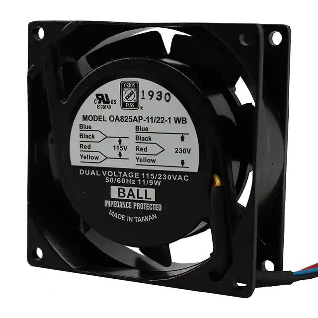 This is manufactured by Orion Fans. The manufacturer part number is OA825AP-11/22-1WB. The blades are constructed from robust polybutylene terephthalate (pbt) materials. It is assigned with possible HTSUS value of 8414.59.6590. The product is rohs3 compliant. Furthermore, the product is 27.00mm wide. The product features power and watts of 9.00w. It has a 25.0 cfm (0.700m³/min) air flow rate. While the voltage range is 80 ~ 260vac. It has noise values of 28.0db. It also exhibits voltage rating of 115/230vac. In addition, it is reach unaffected. This has integrated with a ball, a bearing with long-lasting features. The product has -4 ~ 176°f (-20 ~ 80°c) operating temperature range. It provides maximum rpm up to 3000 rpm. This product offers longer life span for 60000 hrs @ 40°c. The product has a 0.210 in h2o (52.3 pa) static pressure. It is shipped in box. The product's diameters include square - 80mm l x 80mm h. The product features 4 wire leads termination style. It has a long 19 weeks standard lead time. Its typical moisture sensitivity level is 1 (unlimited). The splendid features of the product include dual voltage. The product oa825, is a highly preferred choice for users. The frame of the product is made from highly durable aluminum materials. The latest designed fan is a type of tubeaxial offering unmatchable applications. Moreover, it corresponds to oa825ap, a base product number of the product. The product is designated with the ear99 code number