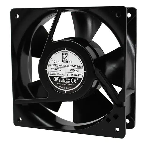 This is manufactured by Orion Fans. The manufacturer part number is OA109AP-22-2TBR. The blades are constructed from robust polybutylene terephthalate (pbt) materials. It is assigned with possible HTSUS value of 8414.59.6590. The product is rohs3 compliant. Furthermore, the product is 38.50mm wide. The product features power and watts of 13.00w. It has a 85.0 cfm (2.38m³/min) air flow rate. It is approved by curus, tuv. While the voltage range is 160 ~ 260vac. It has noise values of 45.0db. It also exhibits voltage rating of 230vac. In addition, it is reach unaffected. This has integrated with a ball, a bearing with long-lasting features. The product has -4 ~ 176°f (-20 ~ 80°c) operating temperature range. It provides maximum rpm up to 2750 rpm. This product offers longer life span for 60000 hrs @ 40°c. The product has a 0.250 in h2o (62.3 pa) static pressure. It is shipped in bulk. The product's diameters include square - 119.5mm l x 119.5mm h. The product features 2 terminals termination style. It has a long 19 weeks standard lead time. Its typical moisture sensitivity level is 1 (unlimited). The splendid features of the product include reverse air flow. The typical product's weight is 1.2 lbs (544.3 g). The product oa109, is a highly preferred choice for users. The frame of the product is made from highly durable aluminum materials. The latest designed fan is a type of tubeaxial offering unmatchable applications. Moreover, it corresponds to oa109ap, a base product number of the product. The product is designated with the ear99 code number