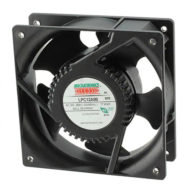 This is manufactured by Mechatronics Fan Group. The manufacturer part number is LPC12A99-BTER. The blades are constructed from robust plastic materials. It is assigned with possible HTSUS value of 8414.59.6590. Furthermore, the product is 38.00mm wide. The product features power and watts of 12.00w. It has a 140.0 cfm (3.92m³/min) air flow rate. While the voltage range is 90 ~ 264vac. It has noise values of 56.0db(a). It also exhibits voltage rating of 90 ~ 264vac. This has integrated with a ball, a bearing with long-lasting features. The product has -40 ~ 158°f (-40 ~ 70°c) operating temperature range. It provides maximum rpm up to 4000 rpm. The product has a 0.440 in h2o (109.6 pa) static pressure. It is shipped in bulk. The product's diameters include square - 120mm l x 120mm h. The product features 2 terminals termination style. Its typical moisture sensitivity level is 1 (unlimited). The splendid features of the product include electronic commutation (ec). The typical product's weight is 0.816 lb (370.13 g). The product lpc12a, is a highly preferred choice for users. The frame of the product is made from highly durable magnesium materials. The latest designed fan is a type of tubeaxial offering unmatchable applications. The product is designated with the ear99 code number