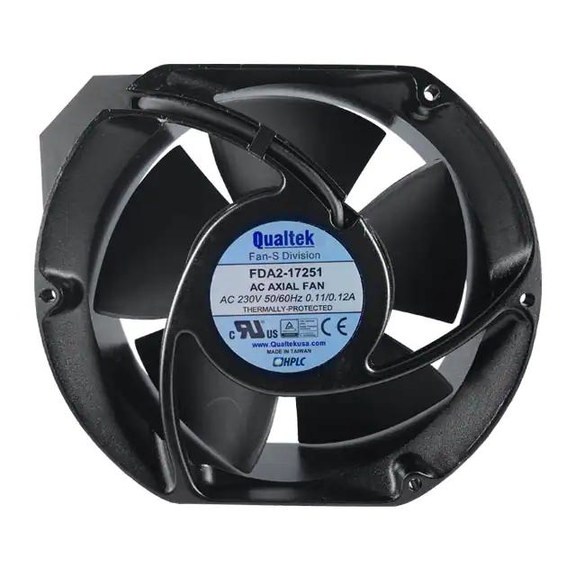 This is manufactured by Qualtek. The manufacturer part number is FDA2-17251NBKT3F. The blades are constructed from robust plastic materials. It is assigned with possible HTSUS value of 8414.59.6590. The product is rohs3 compliant. Furthermore, the product is 51.00mm wide. The product features power and watts of 27.00w. It has a 275.0 cfm (7.70m³/min) air flow rate. It is approved by ce, curus, tuv. It has noise values of 60.0db(a). It also exhibits voltage rating of 115vac. In addition, it is reach unaffected. This has integrated with a ball, a bearing with long-lasting features. The product has -4 ~ 158°f (-20 ~ 70°c) operating temperature range. It provides maximum rpm up to 3300 rpm. This product offers longer life span for 50000 hrs @ 25°c. The product has a 0.768 in h2o (191.3 pa) static pressure. It is shipped in bulk. The product's diameters include rectangular/rounded - 172mm l x 151mm h. The product features 2 terminals termination style. It has a long 22 weeks standard lead time. Additionally, the product's output is 0.240a Its typical moisture sensitivity level is 1 (unlimited). The typical product's weight is 1.9 lbs (861.8 g). The product hplc, fda2-17251, is a highly preferred choice for users. The frame of the product is made from highly durable aluminum materials. The latest designed fan is a type of tubeaxial offering unmatchable applications. Moreover, it corresponds to fda2-17251, a base product number of the product. The product is designated with the ear99 code number
