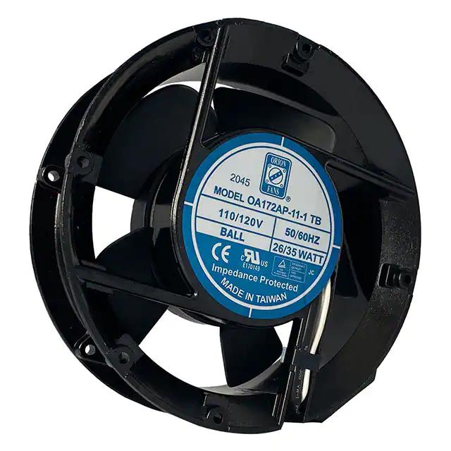 This is manufactured by Orion Fans. The manufacturer part number is OA172AP-11-1TB. The blades are constructed from robust polybutylene terephthalate (pbt) materials. It is assigned with possible HTSUS value of 8414.59.6590. The product is rohs3 compliant. Furthermore, the product is 51.00mm wide. The product features power and watts of 35.00w. It has a 235.0 cfm (6.58m³/min) air flow rate. It is approved by curus, tuv. While the voltage range is 80 ~ 130vac. It has noise values of 52.0db. It also exhibits voltage rating of 115vac. In addition, it is reach unaffected. This has integrated with a ball, a bearing with long-lasting features. The product has -40 ~ 158°f (-40 ~ 70°c) operating temperature range. It provides maximum rpm up to 3200 rpm. This product offers longer life span for 60000 hrs @ 40°c. The product has a 0.700 in h2o (174.4 pa) static pressure. It is shipped in box. The product's diameters include round - 172mm dia. The product features 2 terminals termination style. It has a long 19 weeks standard lead time. Its typical moisture sensitivity level is 1 (unlimited). The typical product's weight is 2.7 lbs (1.2 kg). The product oa172ap, is a highly preferred choice for users. The frame of the product is made from highly durable aluminum materials. The latest designed fan is a type of tubeaxial offering unmatchable applications. Moreover, it corresponds to oa172ap, a base product number of the product. The product is designated with the ear99 code number