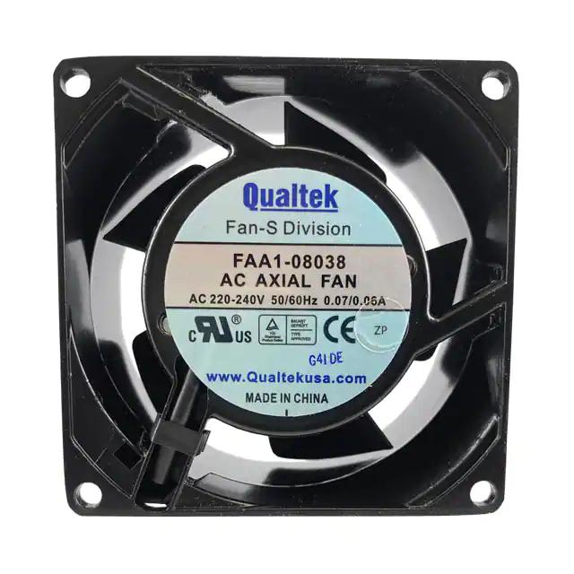 This is manufactured by Qualtek. The manufacturer part number is FAA1-08038NBHT31. The blades are constructed from robust plastic materials. It is assigned with possible HTSUS value of 8414.59.6590. The product is rohs3 compliant. Furthermore, the product is 38.00mm wide. The product features power and watts of 8.50w. It has a 29.6 cfm (0.829m³/min) air flow rate. It is approved by ce, curus, tuv. It has noise values of 31.6db(a). It also exhibits voltage rating of 115vac. In addition, it is reach unaffected. This has integrated with a ball, a bearing with long-lasting features. The product has 14 ~ 158°f (-10 ~ 70°c) operating temperature range. It provides maximum rpm up to 2800 rpm. The product has a 0.166 in h2o (41.3 pa) static pressure. It is shipped in bulk. The product's diameters include square - 80mm l x 80mm h. The product features 2 terminals termination style. It has a long 38 weeks standard lead time. Additionally, the product's output is 0.100a Its typical moisture sensitivity level is 1 (unlimited). The typical product's weight is 0.706 lb (320.24 g). The product faa1-08038, is a highly preferred choice for users. The frame of the product is made from highly durable aluminum materials. The latest designed fan is a type of tubeaxial offering unmatchable applications. Moreover, it corresponds to faa1-08038, a base product number of the product. The product is designated with the ear99 code number