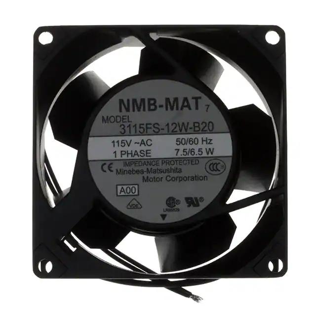 This is manufactured by NMB Technologies Corporation. The manufacturer part number is 3115FS-12W-B20-A00. The blades are constructed from robust plastic materials. It is assigned with possible HTSUS value of 8414.59.6590. The product is rohs compliant. Furthermore, the product is 38.00mm wide. The product features power and watts of 7.00w. It has a 27.0 cfm (0.756m³/min) air flow rate. It is approved by ce, csa, tuv, ul, vde. It has noise values of 40.0db. It also exhibits voltage rating of 115vac. This has integrated with a ball, a bearing with long-lasting features. The product has 14 ~ 158°f (-10 ~ 70°c) operating temperature range. It provides maximum rpm up to 2700 rpm. The product has a 0.130 in h2o (32.5 pa) static pressure. It is shipped in bulk. The product's diameters include square - 80mm l x 80mm h. The product features 2 wire leads termination style. It has a long 26 weeks standard lead time. Additionally, the product's output is 0.090a Its typical moisture sensitivity level is not applicable. The typical product's weight is 0.74 lb (335.66 g). The product fs, is a highly preferred choice for users. The frame of the product is made from highly durable aluminum materials. The latest designed fan is a type of tubeaxial offering unmatchable applications. Moreover, it corresponds to 3115fs, a base product number of the product. The product is designated with the ear99 code number