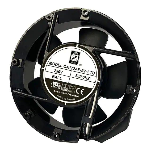 This is manufactured by Orion Fans. The manufacturer part number is OA172AP-22-1TB. The blades are constructed from robust polybutylene terephthalate (pbt) materials. It is assigned with possible HTSUS value of 8414.59.6590. The product is rohs3 compliant. Furthermore, the product is 51.00mm wide. The product features power and watts of 35.00w. It has a 235.0 cfm (6.58m³/min) air flow rate. It is approved by curus, tuv. While the voltage range is 160 ~ 260vac. It has noise values of 52.0db. It also exhibits voltage rating of 230vac. In addition, it is reach unaffected. This has integrated with a ball, a bearing with long-lasting features. The product has -40 ~ 158°f (-40 ~ 70°c) operating temperature range. It provides maximum rpm up to 3200 rpm. This product offers longer life span for 60000 hrs @ 40°c. The product has a 0.700 in h2o (174.4 pa) static pressure. It is shipped in box. The product's diameters include round - 172mm dia. The product features 2 terminals termination style. It has a long 19 weeks standard lead time. Its typical moisture sensitivity level is 1 (unlimited). The typical product's weight is 2.7 lbs (1.2 kg). The product oa172ap, is a highly preferred choice for users. The frame of the product is made from highly durable aluminum materials. The latest designed fan is a type of tubeaxial offering unmatchable applications. Moreover, it corresponds to oa172ap, a base product number of the product. The product is designated with the ear99 code number