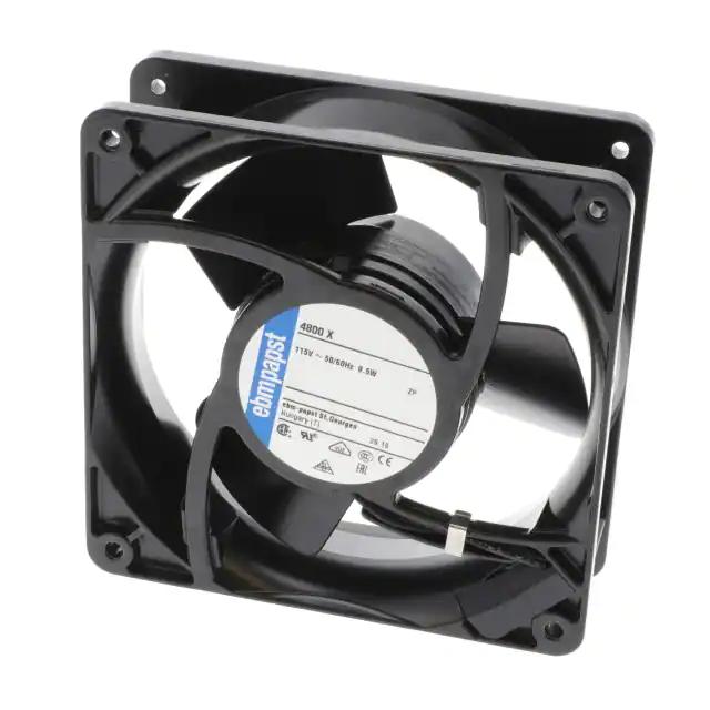 This is manufactured by ebm-papst Inc.. The manufacturer part number is 4800X. The blades are constructed from robust metal materials. It is assigned with possible HTSUS value of 8414.59.6590. Furthermore, the product is 38.00mm wide. The product features power and watts of 9.00w. It has a 56.0 cfm (1.57m³/min) air flow rate. It is approved by ccc, ce, csa, ul, vde. It has noise values of 34.0db(a). It also exhibits voltage rating of 115vac. This has integrated with a sleeve, a bearing with long-lasting features. The product has 14 ~ 167°f (-10 ~ 75°c) operating temperature range. It provides maximum rpm up to 1700 rpm. The latest designed fan is a type of tubeaxial offering unmatchable applications. The product has a 0.080 in h2o (19.9 pa) static pressure. It is shipped in bulk. The product's diameters include square - 119mm l x 119mm h. The product features 2 wire leads termination style. Its typical moisture sensitivity level is not applicable. The splendid features of the product include locked rotor protection. The product 4800x, is a highly preferred choice for users. The frame of the product is made from highly durable metal materials. This product offers longer life span for 60000 hrs @ 40°c. The product is designated with the ear99 code number