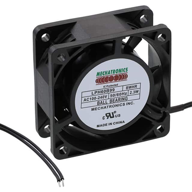 This is manufactured by Mechatronics Fan Group. The manufacturer part number is LPH60B99-BWHR. The blades are constructed from robust plastic materials. It is assigned with possible HTSUS value of 8414.59.6590. The product is rohs compliant. Furthermore, the product is 25.50mm wide. The product features power and watts of 2.30w. It has a 17.0 cfm (0.476m³/min) air flow rate. It has noise values of 35.0db(a). It also exhibits voltage rating of 100 ~ 240vac. This has integrated with a ball, a bearing with long-lasting features. The product has -40 ~ 158°f (-40 ~ 70°c) operating temperature range. It provides maximum rpm up to 4500 rpm. The product has a 0.240 in h2o (59.8 pa) static pressure. It is shipped in bulk. The product's diameters include square - 60mm l x 60mm h. The product features 2 wire leads termination style. It has a long 24 weeks standard lead time. Additionally, the product's output is 0.060a Its typical moisture sensitivity level is not applicable. The splendid features of the product include auto restart, electronic commutation (ec). The typical product's weight is 0.154 lb (69.85 g). The product lph60b99, is a highly preferred choice for users. The frame of the product is made from highly durable plastic materials. The latest designed fan is a type of tubeaxial offering unmatchable applications. Moreover, it corresponds to lph60, a base product number of the product. The product is designated with the ear99 code number