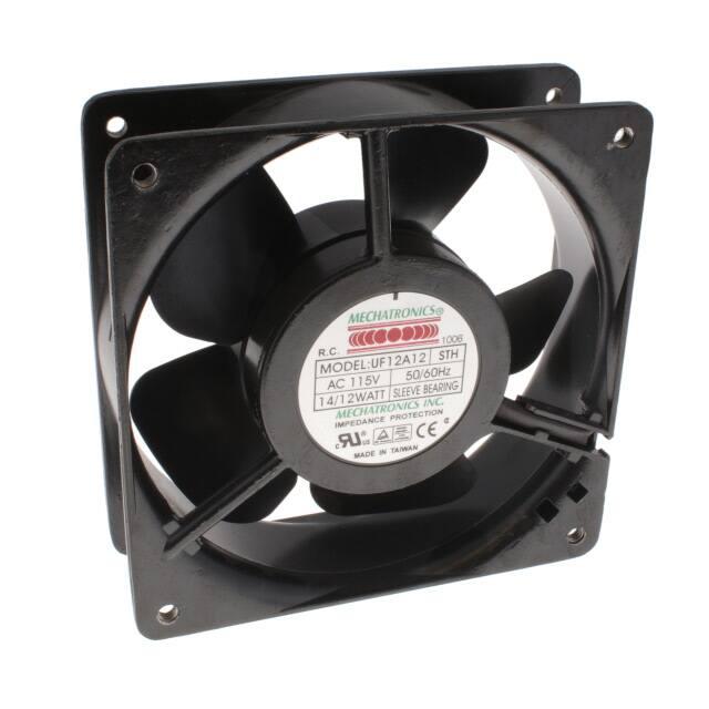 This is manufactured by Mechatronics Fan Group. The manufacturer part number is UF12A12-STHR-M5. The blades are constructed from robust polybutylene terephthalate (pbt) materials. It is assigned with possible HTSUS value of 8414.59.6590. The product is rohs compliant. Furthermore, the product is 38.00mm wide. The product features power and watts of 12.00w. It has a 106.0 cfm (2.97m³/min) air flow rate. It is approved by ce, cul, tuv, ul. It has noise values of 46.0db(a). It also exhibits voltage rating of 115vac. This has integrated with a sleeve, a bearing with long-lasting features. The product has -40 ~ 158°f (-40 ~ 70°c) operating temperature range. It provides maximum rpm up to 3100 rpm. The product has a 0.350 in h2o (87.2 pa) static pressure. It is shipped in bulk. The product's diameters include square - 120mm l x 120mm h. The product features 2 terminals termination style. It has a long 12 weeks standard lead time. Additionally, the product's output is 0.160a Its typical moisture sensitivity level is not applicable. The typical product's weight is 1.168 lbs (530 g). The product uf12a, is a highly preferred choice for users. The frame of the product is made from highly durable polybutylene terephthalate (pbt) materials. The latest designed fan is a type of tubeaxial offering unmatchable applications. Moreover, it corresponds to uf12a, a base product number of the product. The product is designated with the ear99 code number