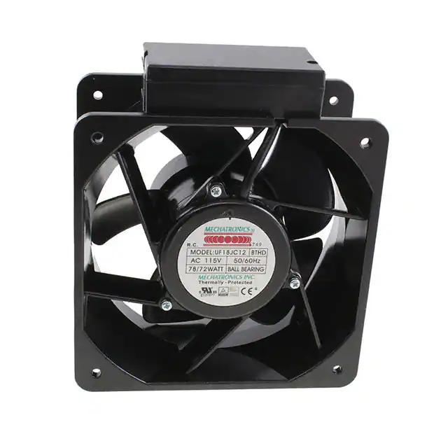 This is manufactured by Mechatronics Fan Group. The manufacturer part number is UF18JC12-BTHR. The blades are constructed from robust polybutylene terephthalate (pbt) materials. It is assigned with possible HTSUS value of 8414.59.6590. The product is rohs compliant. Furthermore, the product is 90.00mm wide. The product features power and watts of 72.0w. It has a 460.0 cfm (12.88m³/min) air flow rate. It is approved by ce, cul, tuv, ul. It has noise values of 59.0db(a). It also exhibits voltage rating of 115vac. This has integrated with a ball, a bearing with long-lasting features. The product has -40 ~ 158°f (-40 ~ 70°c) operating temperature range. It provides maximum rpm up to 3400 rpm. The product has a 1.060 in h2o (264.0 pa) static pressure. It is shipped in bulk. The product's diameters include square - 180mm l x 180mm h. The product features 2 terminals termination style. It has a long 44 weeks standard lead time. Additionally, the product's output is 0.630a Its typical moisture sensitivity level is not applicable. The splendid features of the product include permanent split capacitor motor, thermal overload protector (top). The typical product's weight is 4.8 lbs (2.2 kg). The product uf18jc-4, is a highly preferred choice for users. The frame of the product is made from highly durable aluminum materials. The latest designed fan is a type of tubeaxial offering unmatchable applications. Moreover, it corresponds to uf18j, a base product number of the product. The product is designated with the ear99 code number