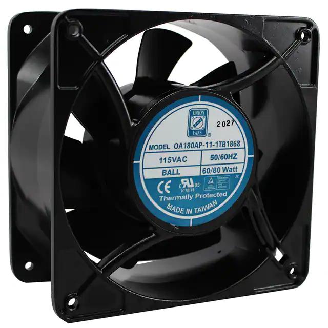 This is manufactured by Orion Fans. The manufacturer part number is OA180AP-11-1TB1868. The blades are constructed from robust steel materials. It is assigned with possible HTSUS value of 8414.59.6590. The product is rohs3 compliant. Furthermore, the product is 89.00mm wide. The product features power and watts of 80.0w. It has a 380.0 cfm (10.64m³/min) air flow rate. It is approved by ce, curus, tuv, ur. It has noise values of 63.0db. It also exhibits voltage rating of 115vac. In addition, it is reach unaffected. This has integrated with a ball, a bearing with long-lasting features. The product has -22 ~ 176°f (-30 ~ 80°c) operating temperature range. It provides maximum rpm up to 3250 rpm. This product offers longer life span for 50000 hrs @ 55°c. The product has a 0.760 in h2o (189.3 pa) static pressure. It is shipped in box. The product's diameters include square - 176mm l x 176mm h. The product features 2 terminals termination style. It has a long 19 weeks standard lead time. Its typical moisture sensitivity level is not applicable. It is IP rated with ip68 - dust tight, waterproof. The splendid features of the product include thermal overload protector (top). The typical product's weight is 4.1 lbs (1.9 kg). The product oa180ap, is a highly preferred choice for users. The frame of the product is made from highly durable aluminum materials. The latest designed fan is a type of tubeaxial offering unmatchable applications. Moreover, it corresponds to oa180ap, a base product number of the product. The product is designated with the ear99 code number