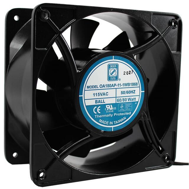 This is manufactured by Orion Fans. The manufacturer part number is OA180AP-11-1WB1868. The blades are constructed from robust steel materials. It is assigned with possible HTSUS value of 8414.59.6590. The product is rohs3 compliant. Furthermore, the product is 89.00mm wide. The product features power and watts of 80.0w. It has a 380.0 cfm (10.64m³/min) air flow rate. It is approved by ce, curus, tuv, ur. It has noise values of 63.0db. It also exhibits voltage rating of 115vac. In addition, it is reach unaffected. This has integrated with a ball, a bearing with long-lasting features. The product has -22 ~ 176°f (-30 ~ 80°c) operating temperature range. It provides maximum rpm up to 3250 rpm. This product offers longer life span for 50000 hrs @ 55°c. The product has a 0.760 in h2o (189.3 pa) static pressure. It is shipped in box. The product's diameters include square - 176mm l x 176mm h. The product features 2 wire leads termination style. It has a long 19 weeks standard lead time. Its typical moisture sensitivity level is not applicable. It is IP rated with ip68 - dust tight, waterproof. The splendid features of the product include thermal overload protector (top). The typical product's weight is 4.1 lbs (1.9 kg). The product oa180ap, is a highly preferred choice for users. The frame of the product is made from highly durable aluminum materials. The latest designed fan is a type of tubeaxial offering unmatchable applications. Moreover, it corresponds to oa180ap, a base product number of the product. The product is designated with the ear99 code number