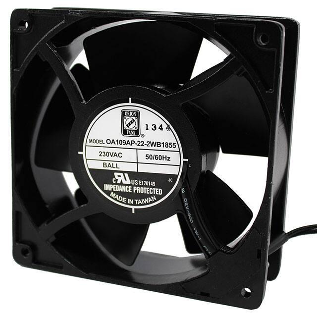 This is manufactured by Orion Fans. The manufacturer part number is OA109AP-22-2WB1855. The blades are constructed from robust metal materials. It is assigned with possible HTSUS value of 8414.59.6590. The product is rohs3 compliant. Furthermore, the product is 38.50mm wide. The product features power and watts of 13.00w. It has a 85.0 cfm (2.38m³/min) air flow rate. It is approved by curus, tuv. While the voltage range is 200 ~ 240vac. It has noise values of 43.0db. It also exhibits voltage rating of 230vac. In addition, it is reach unaffected. This has integrated with a ball, a bearing with long-lasting features. The product has -22 ~ 176°f (-30 ~ 80°c) operating temperature range. It provides maximum rpm up to 2500 rpm. This product offers longer life span for 50000 hrs @ 40°c. The product has a 0.120 in h2o (30.0 pa) static pressure. It is shipped in box. The product's diameters include square - 119.5mm l x 119.5mm h. The product features 2 wire leads termination style. It has a long 19 weeks standard lead time. Its typical moisture sensitivity level is not applicable. It is IP rated with ip55 - dust protected, water resistant. The typical product's weight is 1.3 lbs (589.7 g). The product oa109, is a highly preferred choice for users. The frame of the product is made from highly durable aluminum materials. The latest designed fan is a type of tubeaxial offering unmatchable applications. Moreover, it corresponds to oa109ap, a base product number of the product. The product is designated with the ear99 code number