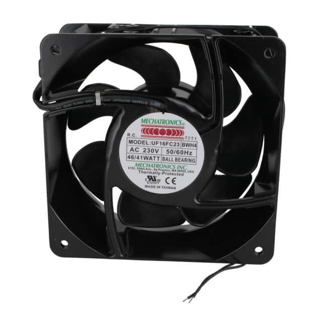 This is manufactured by Mechatronics Fan Group. The manufacturer part number is UF16FC23-BWHR4. The blades are constructed from robust polybutylene terephthalate (pbt) materials. It is assigned with possible HTSUS value of 8414.59.6590. The product is rohs3 compliant. Furthermore, the product is 62.00mm wide. The product features power and watts of 41.00w. It has a 265.0 cfm (7.42m³/min) air flow rate. It has noise values of 56.0db(a). It also exhibits voltage rating of 230vac. This has integrated with a ball, a bearing with long-lasting features. It provides maximum rpm up to 3400 rpm. The product has a 0.720 in h2o (179.3 pa) static pressure. It is shipped in bulk. The product's diameters include square - 160mm l x 160mm h. The product features 2 wire leads termination style. It has a long 44 weeks standard lead time. Additionally, the product's output is 0.170a Its typical moisture sensitivity level is not applicable. The splendid features of the product include permanent split capacitor motor, thermal overload protector (top). The product uf16fc, is a highly preferred choice for users. The frame of the product is made from highly durable aluminum materials. The latest designed fan is a type of tubeaxial offering unmatchable applications. Moreover, it corresponds to uf16f, a base product number of the product. The product is designated with the ear99 code number